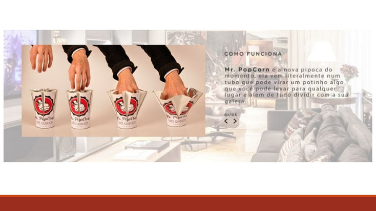 Este projeto apresenta o desenvolvimento de uma embalagem, sendo inovador, útil, além de um produto novo no mercado alimentício,ela foi produzida do zero. Criei a Mr. PopCorn é uma linha de pipocas gourmet o grande diferencial, é que ao você abrir seu pacote de pipoca ele se transforma em um pote, mas podendo voltar ao normal.